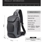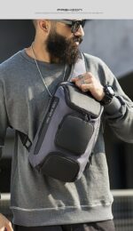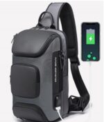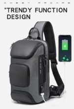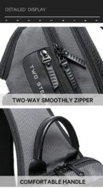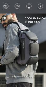 Crossbody Sling Shoulder Bag – Waterproof – Anti-Theft – for Outdoor Sport Travel – Cycling – Casual Office Business – 35x12x21 cm – Grey & Black