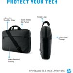 HP Prelude Topload Laptop Bag Up to 15.6″ – Heavily Padded for Impact Protection – Water resistant – Internal Pockets & Compartments- 1 Quick Access External Pocket – 300D Cross-dyed woven, 180G Air mesh | Dark Grey