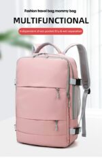 Pink Laptop Backpack – Accommodates Up to 15.6″ Laptops & Tablets – Waterproof – Heavily Padded for Sensitive Electronics Protection –  USB Charging Port – Inner Pockets for Wet & Dry Laundry – Luggage Strap -Multifunctional for Hiking , Gym , Travel