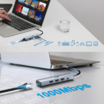- ?? Versatile Multiport Hub with 5 Essential Ports: Includes one Gigabit Ethernet RJ45 output, one USB-C power supply port, and three USB-A 3.0 data ports.