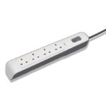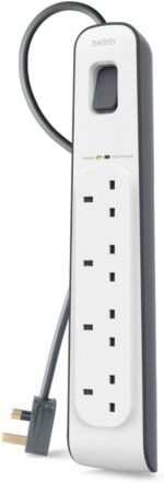 belkin 4-outlet Surge Protection Power Strip with 2M Cord – UP TO 525 JOULES PROTECTION – UNEFFECTED BY SPIKES AND FLUCTUATIONS – THREE-LINE AC SAFETY – Damage Resistant Housing – White Grey