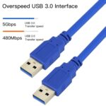 Cable 150 cm USB 3.0 Type A Male to Type A Male Peripherals – Fast Data Transfer for Hard Drive Enclosures, Cooling Pad – Double-shielded Durable – Blue