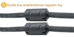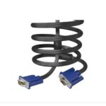 - The VGA cord engineered with molded strain relief connectors for durability, grip treads for easy plugging and unplugging, and finger-tightened screws for a secure connection