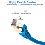 • ?Shielded Ethernet Cable?: Our Cat 7 internet cables are designed with 4 shielded foiled twisted pairs (S/FTP) and an aluminum foil shielding layer. This design can greatly reduce interference and crosstalk from adjacent pairs and other cables, making network speed faster and more stable.