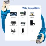• ?Wide Compatibility?: Cat 7 ethernet cable can be perfectly compatible with PC, laptop, computer server, printer, router, modem, networking switch boxe, network media player, NAS, VoIP phone, IP cam, Raspberry Pi 4, PS3, PS4, Nintendo Switch, X-box, cloud data server, patch panel, coupler, hub, smart TV and more with RJ45 connector. It is also backward compatible with Cat5, Cat5e and Cat6 standard.