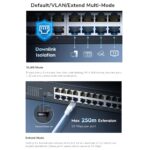 - Cat. 5e or higher cable: 100 meters at Gigabit