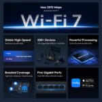 CUDY WR3600 Wi-Fi 7 Router – Dual-Band, 3.6 Gbps Speed, 5 Gigabit Ports, VPN Support, Parental Controls, Easy Setup, Wide Coverage, 200 Device Connectivity, Powerful Quad-Core CPU, and Cudy App Management.
