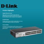 D-Link DGS-1024D 24-Port Unmanaged Gigabit Switch , Durable metal housing , Fanless design , up to 10,000 bytes Jumbo Frames , Half/full-duplex for Ethernet/Fast Ethernet speeds , Plug & Play , Rackmountable