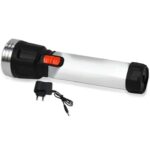 JTC Rechargeable Aluminum Flashlight with Lithium Battery 3.7V 1200mAH , 360 Degree Lighting , 1 LED Light with Adjustable Brightness Switch ; Heating Resistant , up to 16 hours of Operating Time , Power Adaptor Included | Silver JTC-JLL4516B