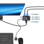 This product is a compact 4-port KVM switch that lets you access and control 4 desktop, laptop or netbook computers. You can share a single USB keyboard, USB mouse and HDMI monitor with both systems, saving space on your desk and using your preferred display, keyboard and mouse with both computers.