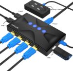 KVM Switch HDMI 4 port Boxes, 4K@30hz USB KVM HDMI Console for 4 Computers sharing Keyboard Mouse and HD Monitor with 4 pack – 2in1 KVM Cables + Desktop Selector Included