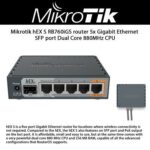MikroTik hEX S RB760iGS Dual-Core 880 MHz Gigabit Ethernet Router , 5x Gigabit Ethernet Ports, USB 2.0, 1.25G SFP, PoE, IPsec Hardware Encryption, microSD Slot, RouterOS L4, 256 MB RAM, 24V Power Adapter
