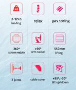 * Load: 2-12kg (plz make sure your screen is within this range, or the mount’s gas spring couldnt work)