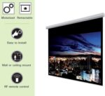 • WIRELESS CONTROL & AUTO-LOCK: You can conveniently control the motorized projector screen’s up and down movement from a distance using either wireless IR remote control. This allows you to easily lock it at the desired length. The built-in motor is energy-efficient and operates smoothly and quietly.