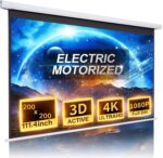 • PROJECTOR SCREEN MOTORIZED: The 111.4 inch projector screen has a 1:1 aspect ratio. The screen features a high gain and is compatible with 3D, 1080P, 4K, and full HD images, ensuring excellent color reproduction. It offers an immersive virtual scene .