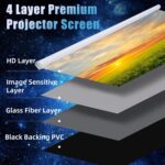 • 4 LAYER ANTI-WRINKLE FABRIC: The retractable projection screen is made of a premium polyester fabric that consists of four layers. This high-density and thick fabric ensures a clear and bright projection, effectively preventing wrinkles and deformation. The projector screen is scrubbable and easy to clean and maintain.