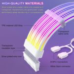 ARGB 24PIN White Power Extension Cable Kit Addressable 5V 3pin Connectors for Motherboard , Four Sides Chunky Silicon Rainbow Bridge 5V ARGB PC PSU Cables, White