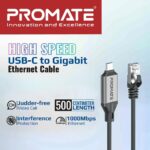 PROMATE High-Speed Gigabit Ethernet Cable to USB-C 1000Mbps; Ultra-Fast 10/100/1000Mbps Ethernet to USB-C™ Adapter Cable ; Universal Compatibility with all USB-C™ Devices ; 5 meters CAT6 UTP ; RJ45 Input to USB-C™ Output | CLINK-RJ45