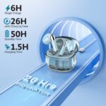• Powerful Endurance: Enjoy 6 hours of continuous use on one charge, with 1.5 hours of listening after just 10 minutes of charging. Combined with the charging case, relish up to 26 hours of playback. Experience seamless, all-day listening with 50 hours of standby and a quick 1.5-hour charging time with 350mAh Battery.