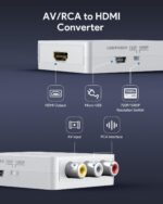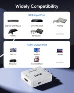 • Plug to Play:  Mini RCA to HDMI converter no extra drivers need, just plug and play, easy to use. Please hook up the USB power cable (included) to 5V power source during use.