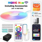 Smart Neon LED Strip 10 METERS – 24V RGB Neon LED Strip with App Control – WIFI Connection – Compatible with Alexa and Google Assistant – App Control  Or Remote Control – Music Sync –Suitable for DIY, Decoration for Gaming Room Streaming , Bedroom , Living Room Décor