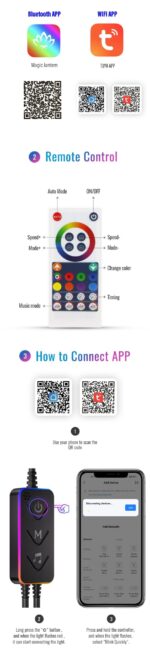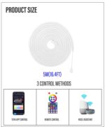• MULTIPLE COLORS AND SCENES: 16 million DIY colors and 64 scene modes for neon strip to meet all your color and scene needs.Flexible and bendable: 5m length is suitable for most decorative purposes.