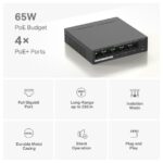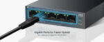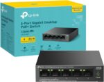 TP-Link 5-Port Gigabit Desktop Switch with 4-Port PoE+, up to 10 Gbps switching capacity, 65 W PoE Budget up to 250 m Transmission, desktop or wall-mounting design, Plug and play, metal case(LS105GP)