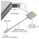 Type C USB-C to Female VGA Adapter Converter Cable , Supports HD , Plug and play – GOLD