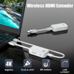 Wireless HDMI Transmitter and Receiver 4K, HDMI Wireless Extender Kit 60 meter 5GHz Plug & Play, Transfer Video Audio from Laptop, Home Theater, PC to Monitor, Projector