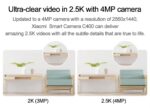 - Ultra-clear video in 2.5K with 4MP camera : Updated to a 4MP camera with a resolution of 2560×1440, Xiaomi Smart Camera C400 can deliver amazing 2.5K videos with all the subtle details that are true to life.