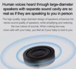 - Clear Sound : The high-quality, large diameter design of speakers enhances the stereo sound quality of speakers, while amplifying and restoring the true nature of sounds. When making two-way voice calls with your baby, you feel as if your baby is next to you.