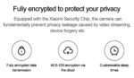 - Fully encrypted to protect your privacy : Equipped with the Xiaomi Security Chip, the camera can fundamentally prevent privacy leakage caused by video streaming, device forgery etc.