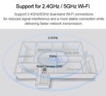 - Support for 2.4GHz / 5GHz Wi-Fi : Support 2.4GHz/5GHz dual-band Wi-Fi connections for reduced signal interference and a more stable connection while delivering faster network transmission.