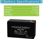 BATTERY TYPE: 12V9AH Absorbent Glass Mat battery is a rechargeable AGM battery that fits in a variety of applications.